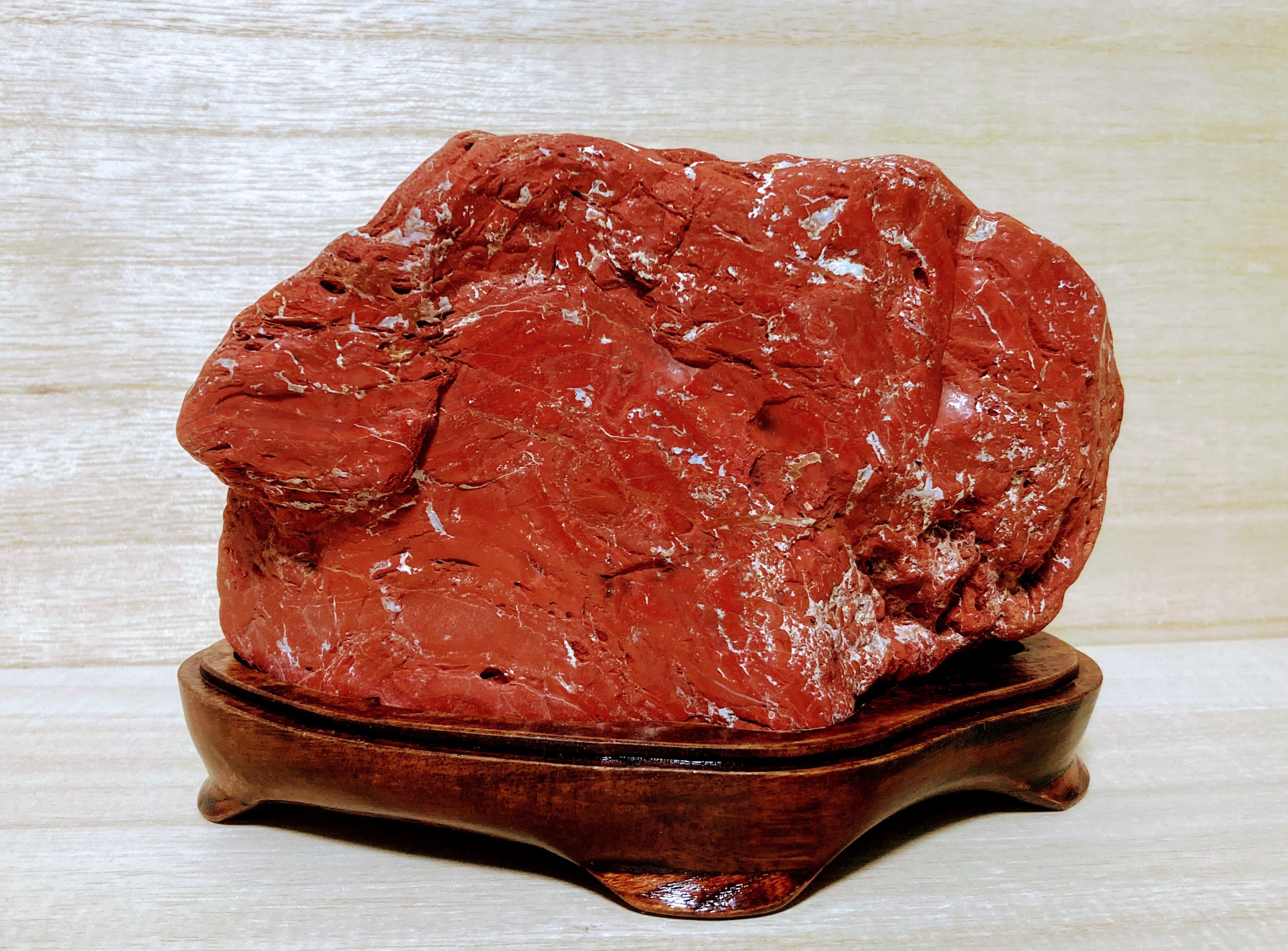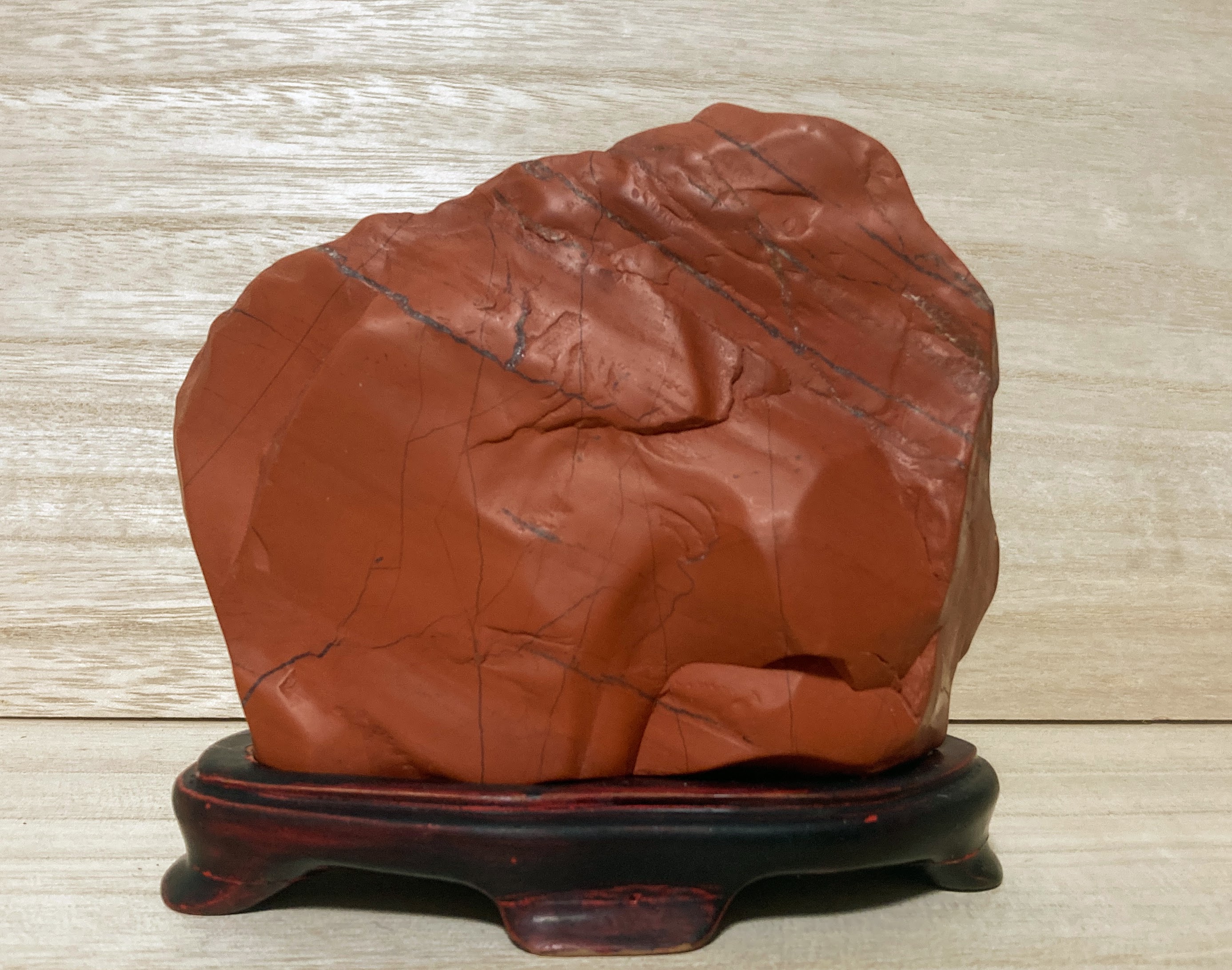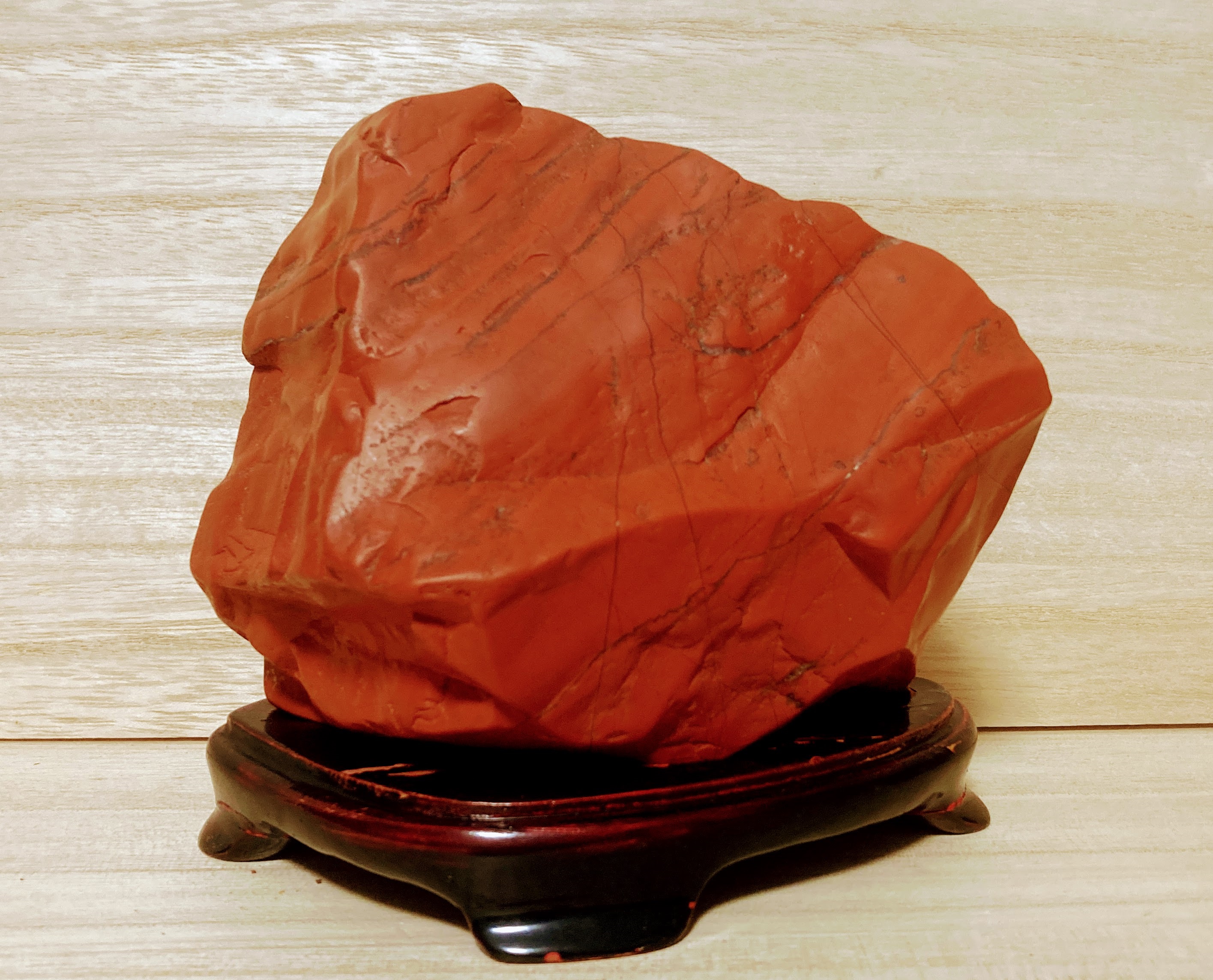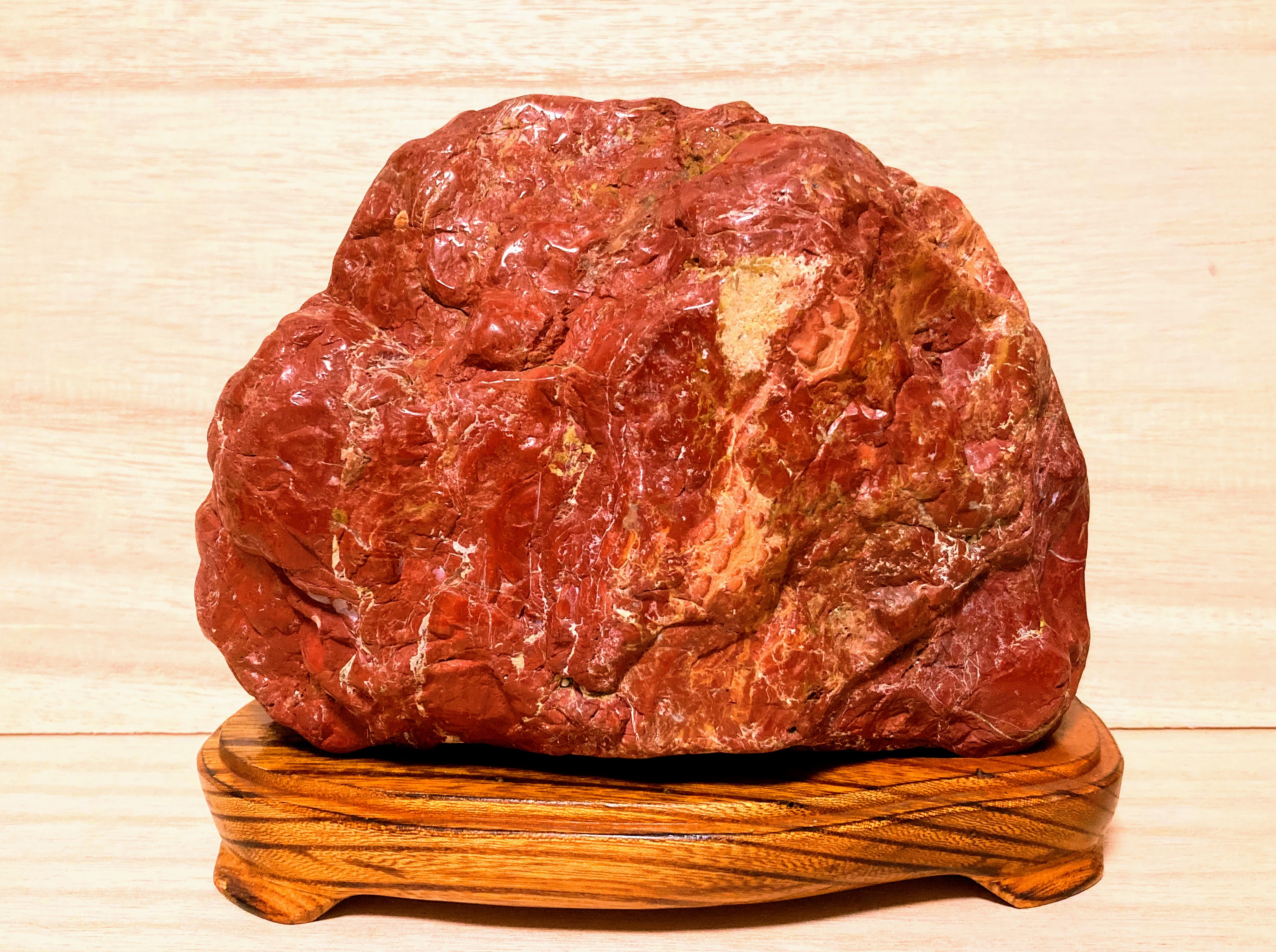 However, there is a wide variation in color tones, and even those based on red can be closer to brown, vermilion, crimson, or deep red. The most vivid colors are the most valuable, and are sometimes described as the color of dragon's blood. Since ancient times, red and vermilion have been believed to have the power to ward off evil, which is one of the reasons why red jade is so valuable. Although there are many different red stones, it is rare to find one with such an impactful red color as Akadama-ishi.