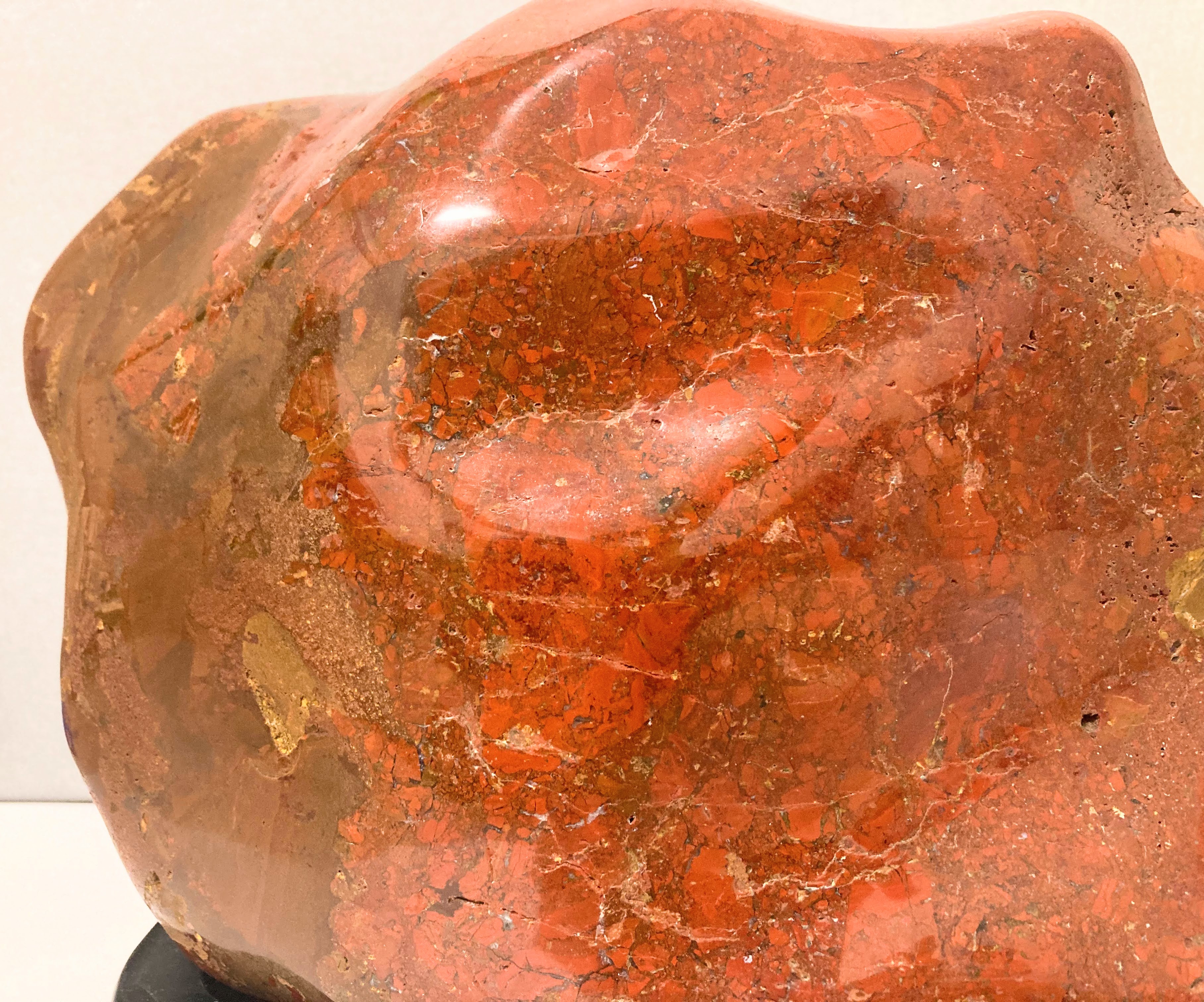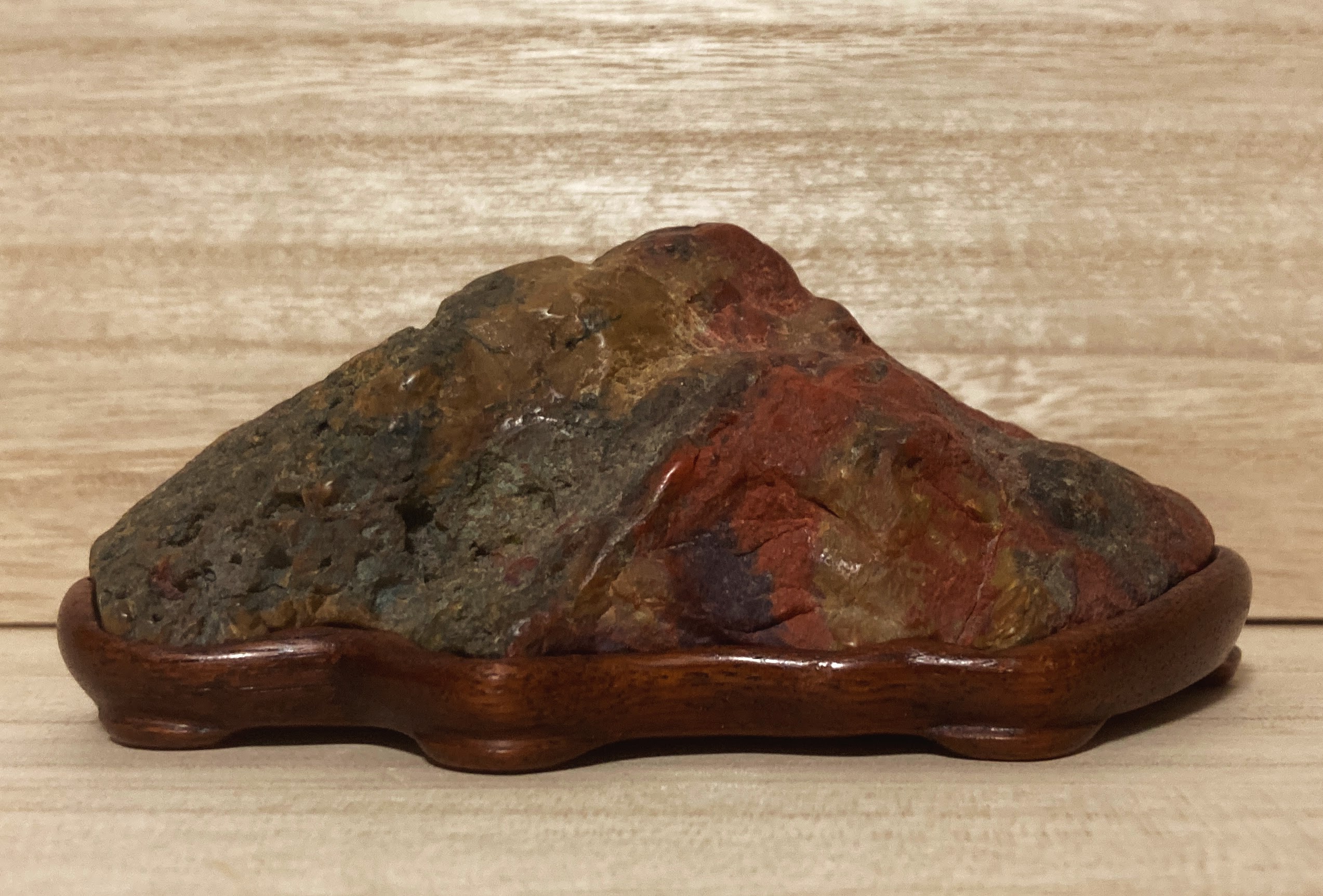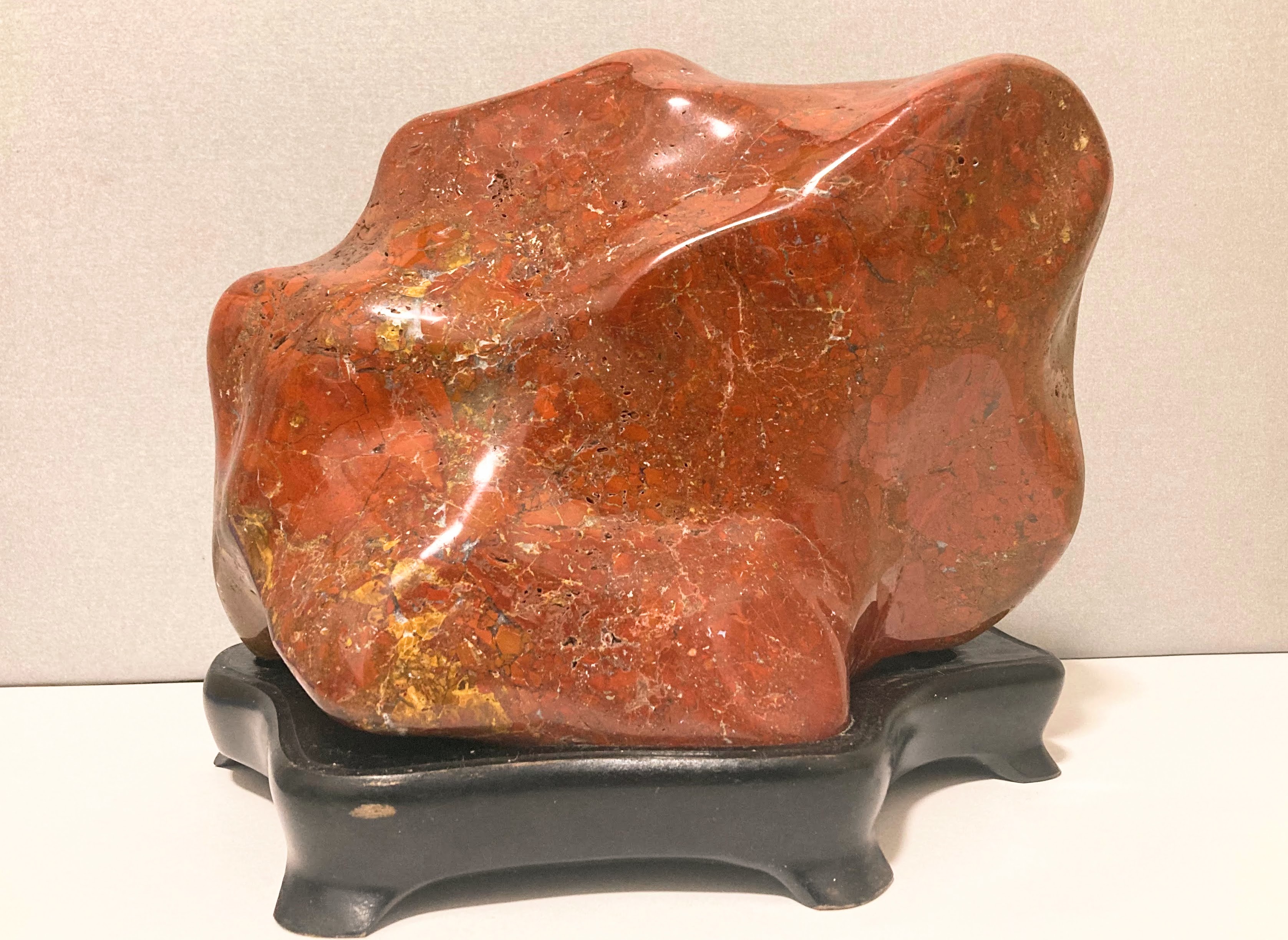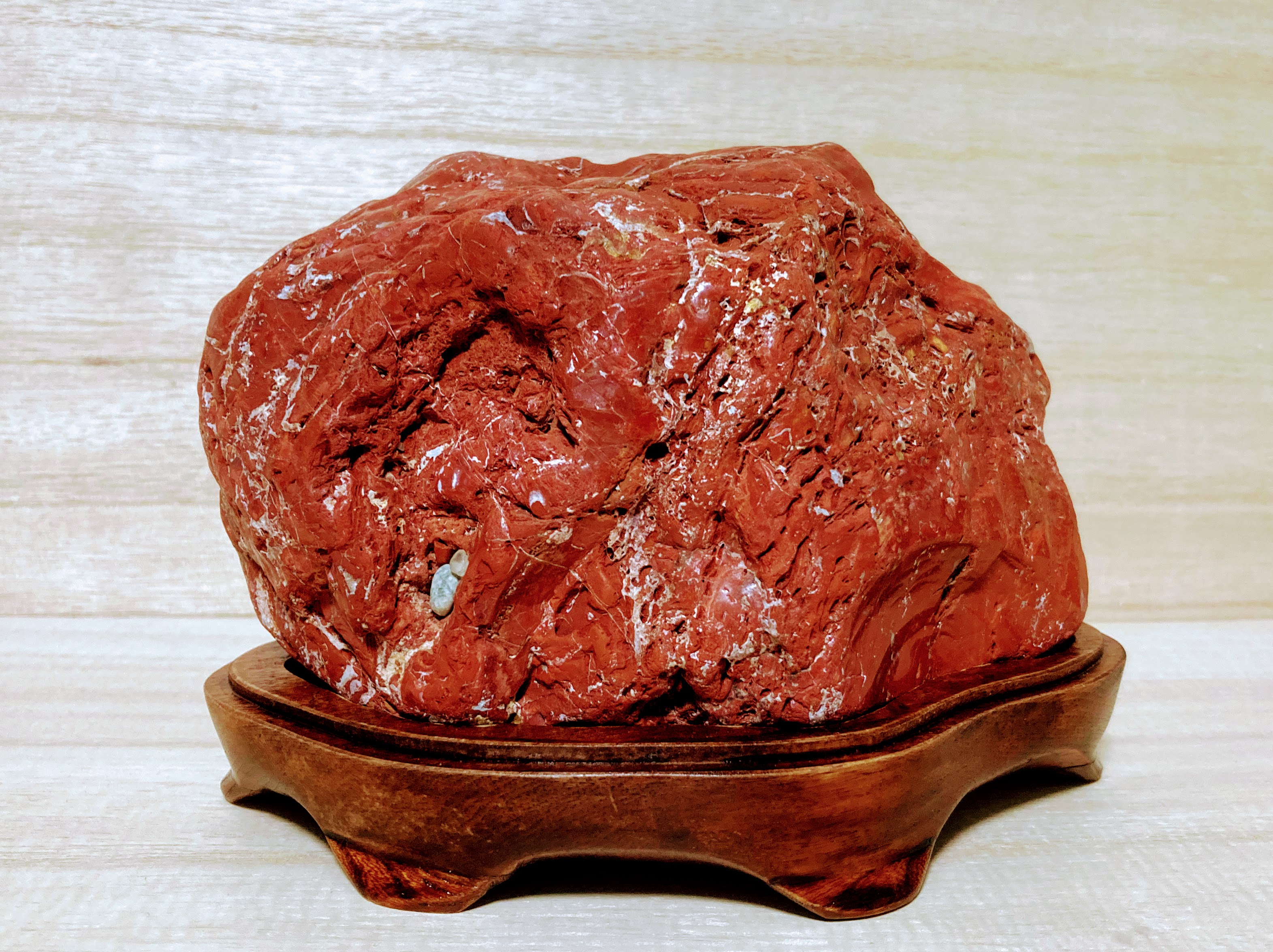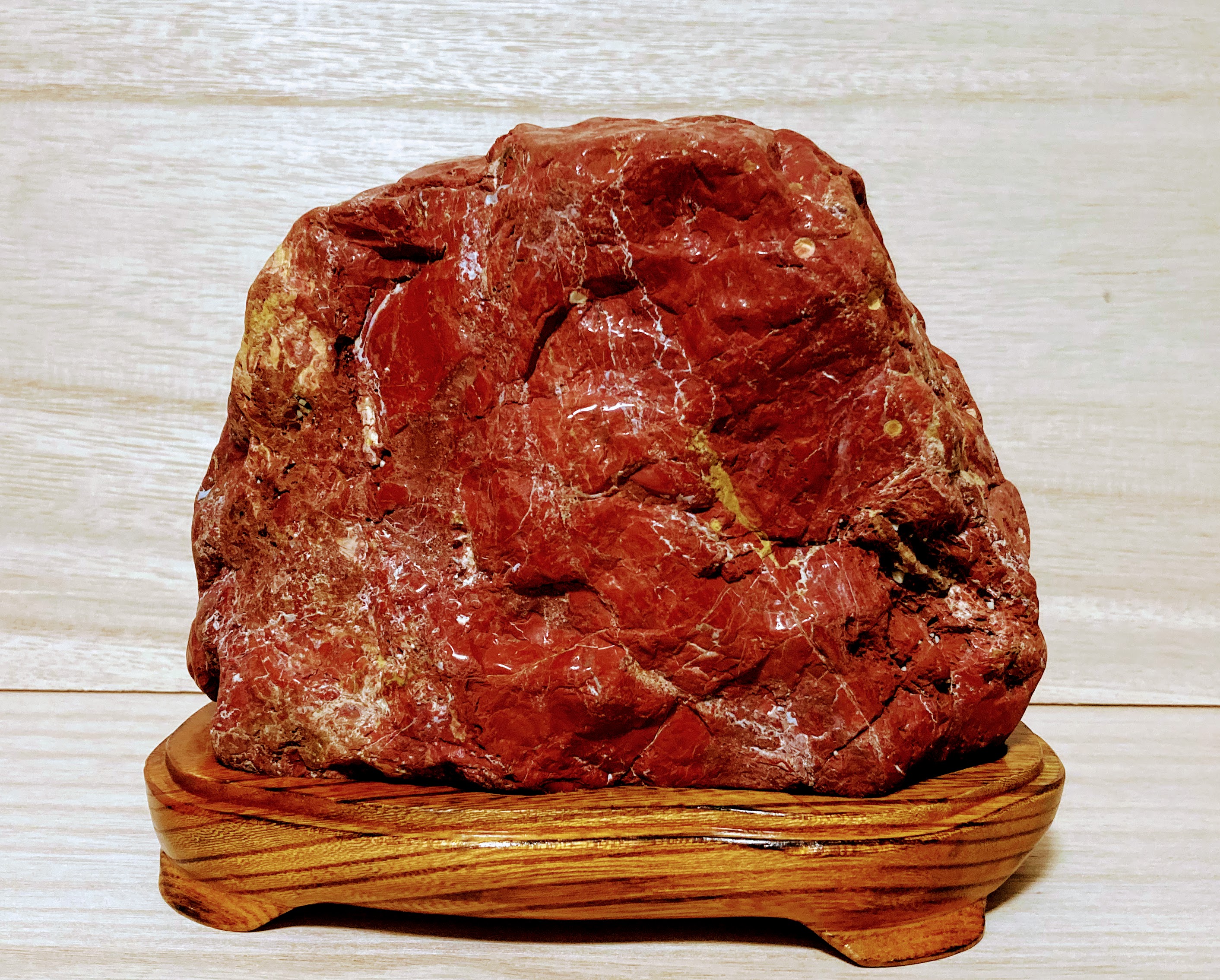 However, there is a wide variation in color tones, and even those based on red can be closer to brown, vermilion, crimson, or deep red. The most vivid colors are the most valuable, and are sometimes described as the color of dragon's blood. Since ancient times, red and vermilion have been believed to have the power to ward off evil, which is one of the reasons why red jade is so valuable. Although there are many different red stones, it is rare to find one with such an impactful red color as Akadama-ishi.