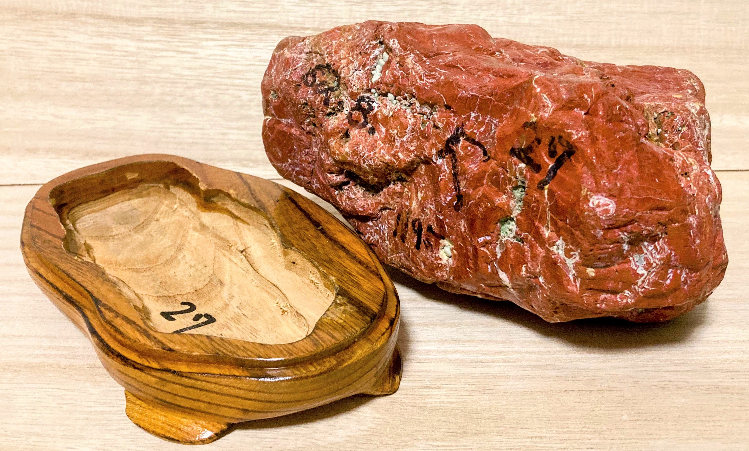 By the way, if you brush the weathered surface of raw Akadama-ishi, it will turn red. This is because it is an aggregate of tiny particles, and of course, the red jadeite is not artificially colored.