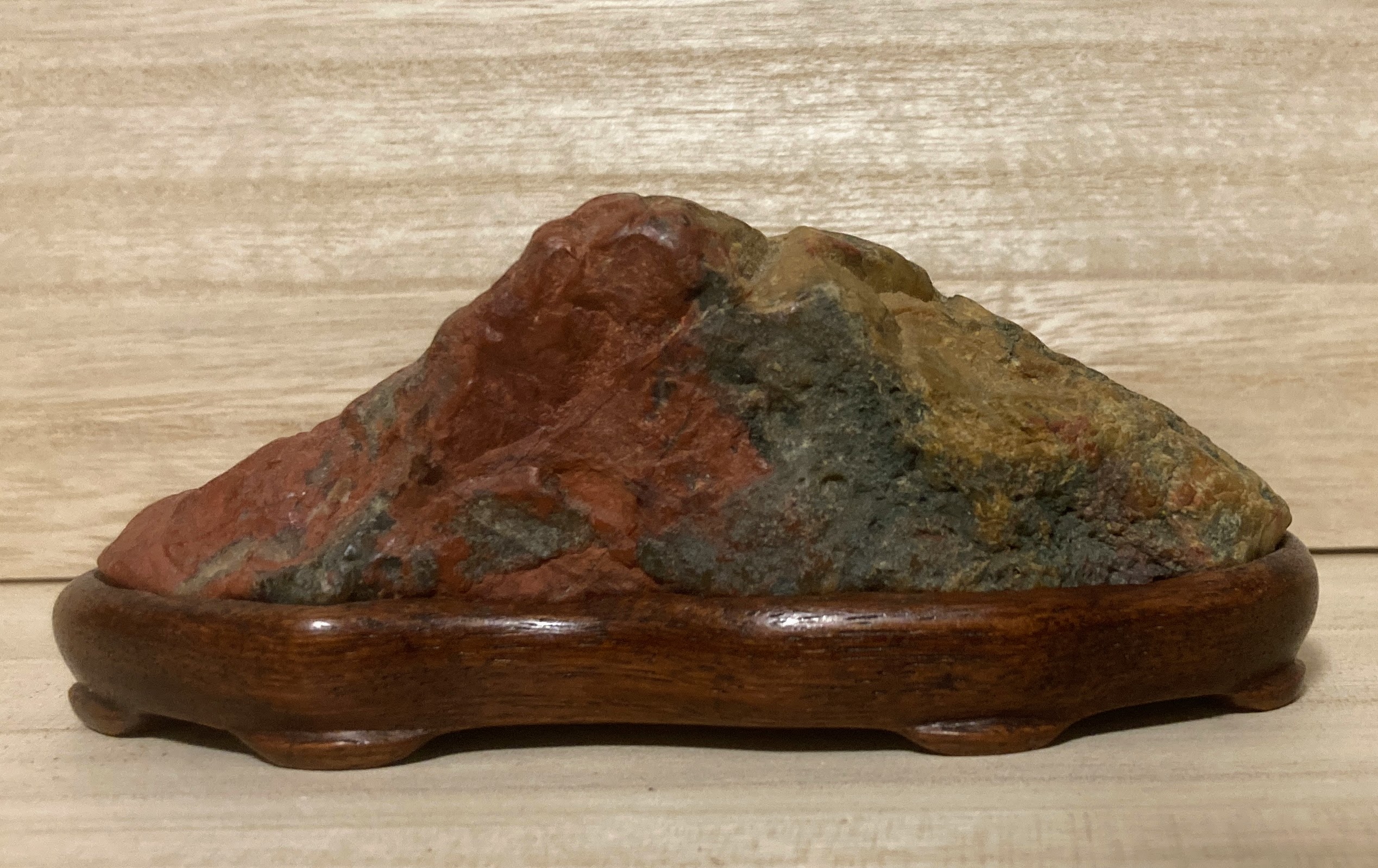 Sado Akadama, as the name suggests, is red, but there are also yellow varieties. And sometimes red and yellow are mixed together. In these cases, the stones contain intermediate colors between red and yellow, and are therefore called Sado Goshiki-ishi. (There are quite a few suiseki stones called Goshiki-ishi, but most are only two or three colors.)